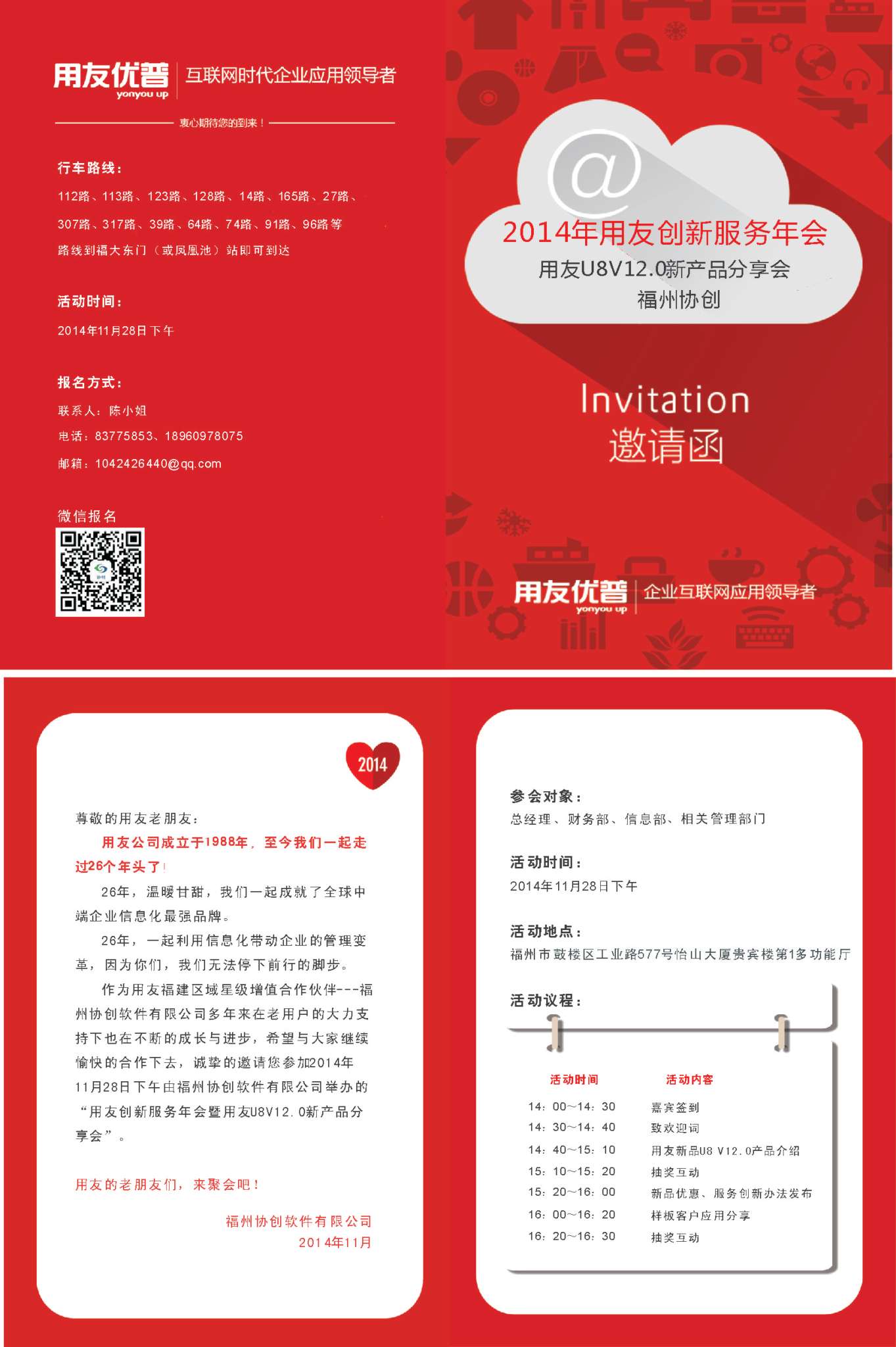 福州协创2014年用友服务年会新品分享会邀请函